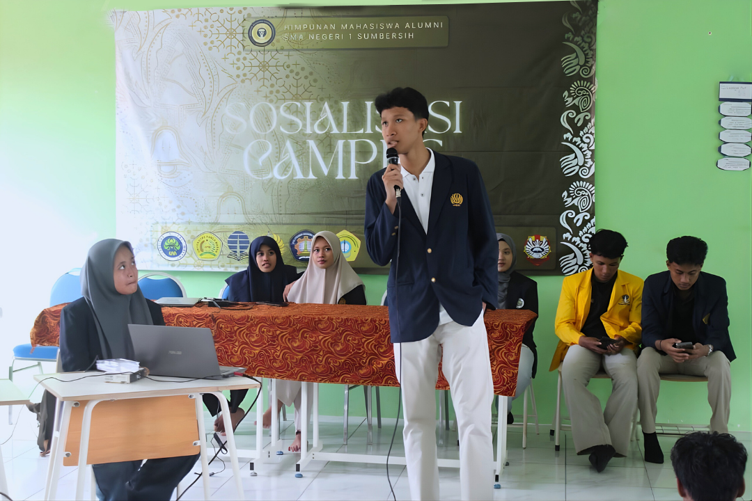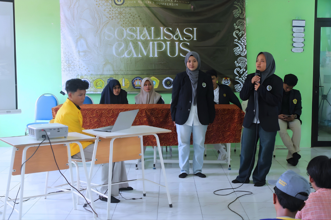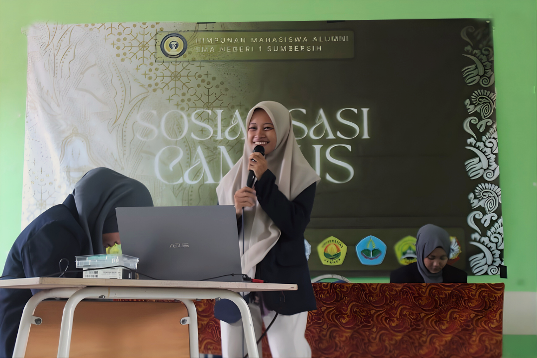 Sumberasih, Kamis (8/1/2026) — SMA Negeri 1 Sumberasih menerima kunjungan Himpunan Mahasiswa Alumni Smansasih dalam rangka pelaksanaan kegiatan Sosialisasi Kampus. Kegiatan ini bertujuan untuk memberikan wawasan, motivasi, serta inspirasi kepada siswa-siswi SMA Negeri 1 Sumberasih dalam menentukan pilihan kampus dan jenjang pendidikan lanjutan setelah lulus sekolah menengah atas.